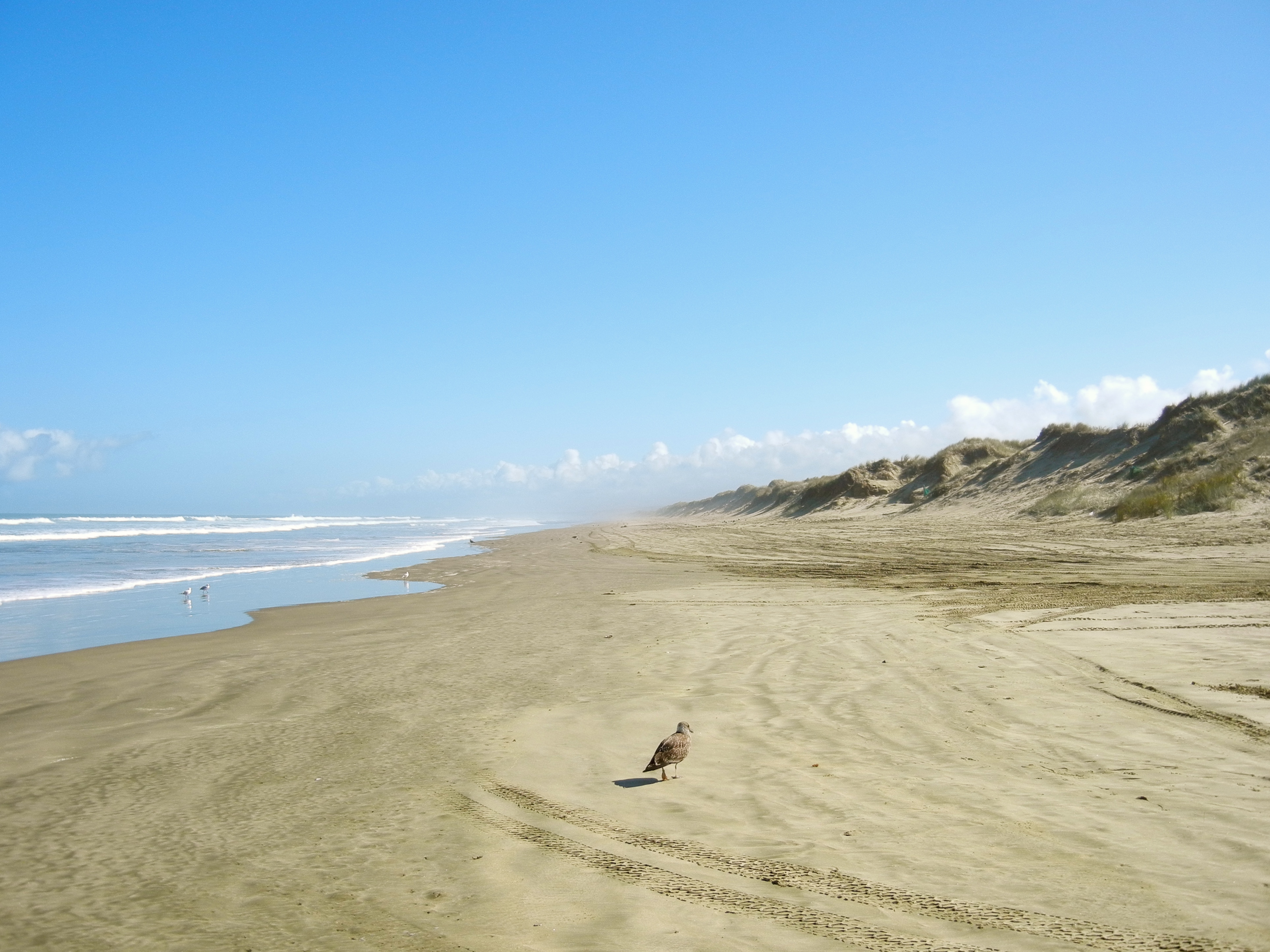 Der Ninety Mile Beach eignet sich hervorragend für eine Pause, da die Fahrzeit von Kerikeri bis zum Cape Reinga doch knapp 3 Stunden beträgt. Der Strand lädt zu einem Spaziergang ein. Es sind kaum Menschen auf dem langen Strandabschnitt zu sehen. Nur einzelne Möwen umgeben uns.