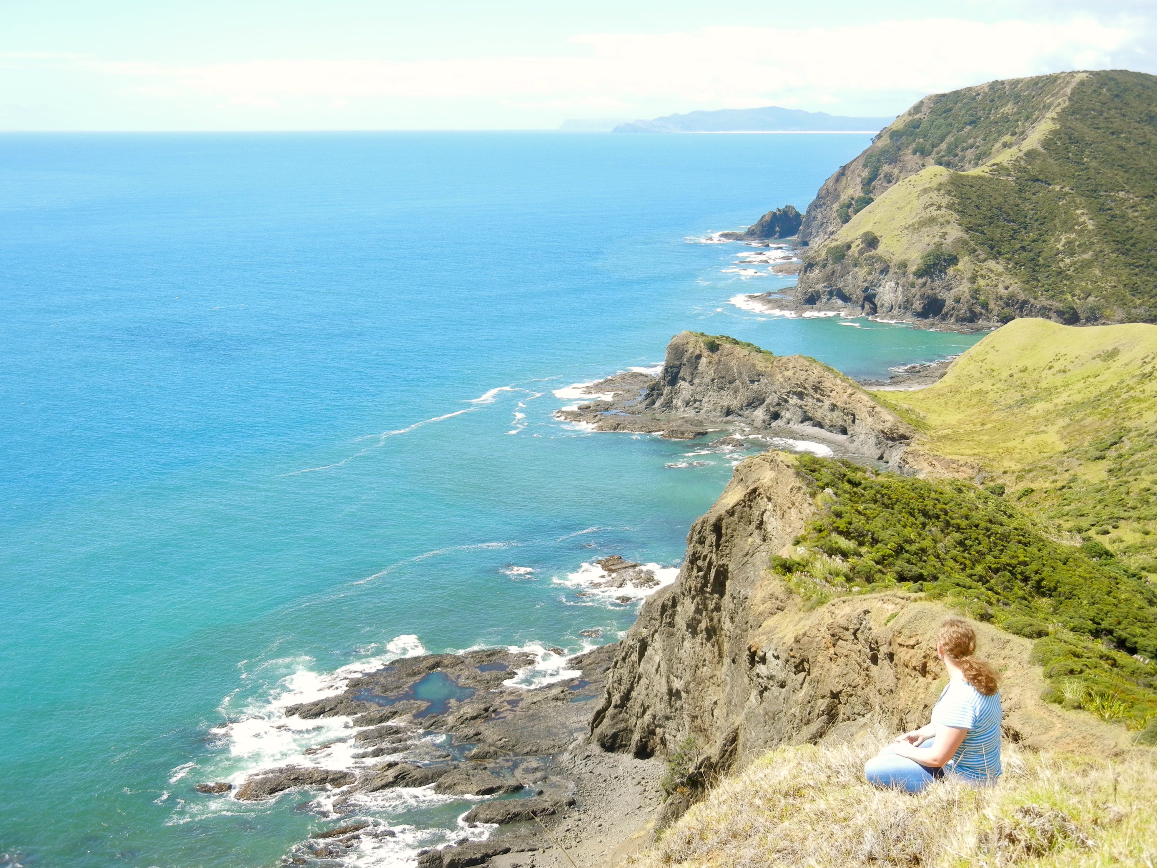 Wir beschliessen, einen Abstecher zu einer Klippe zu machen, um die Stille und die Abgeschiedenheit zu geniessen. Ein wirklich schöner Moment, so im Gras zu sitzen, auf die Klippen, die Strände, das Meer, die Wellen und den Leuchtturm zu blicken und den Wind in den Haaren zu spüren.