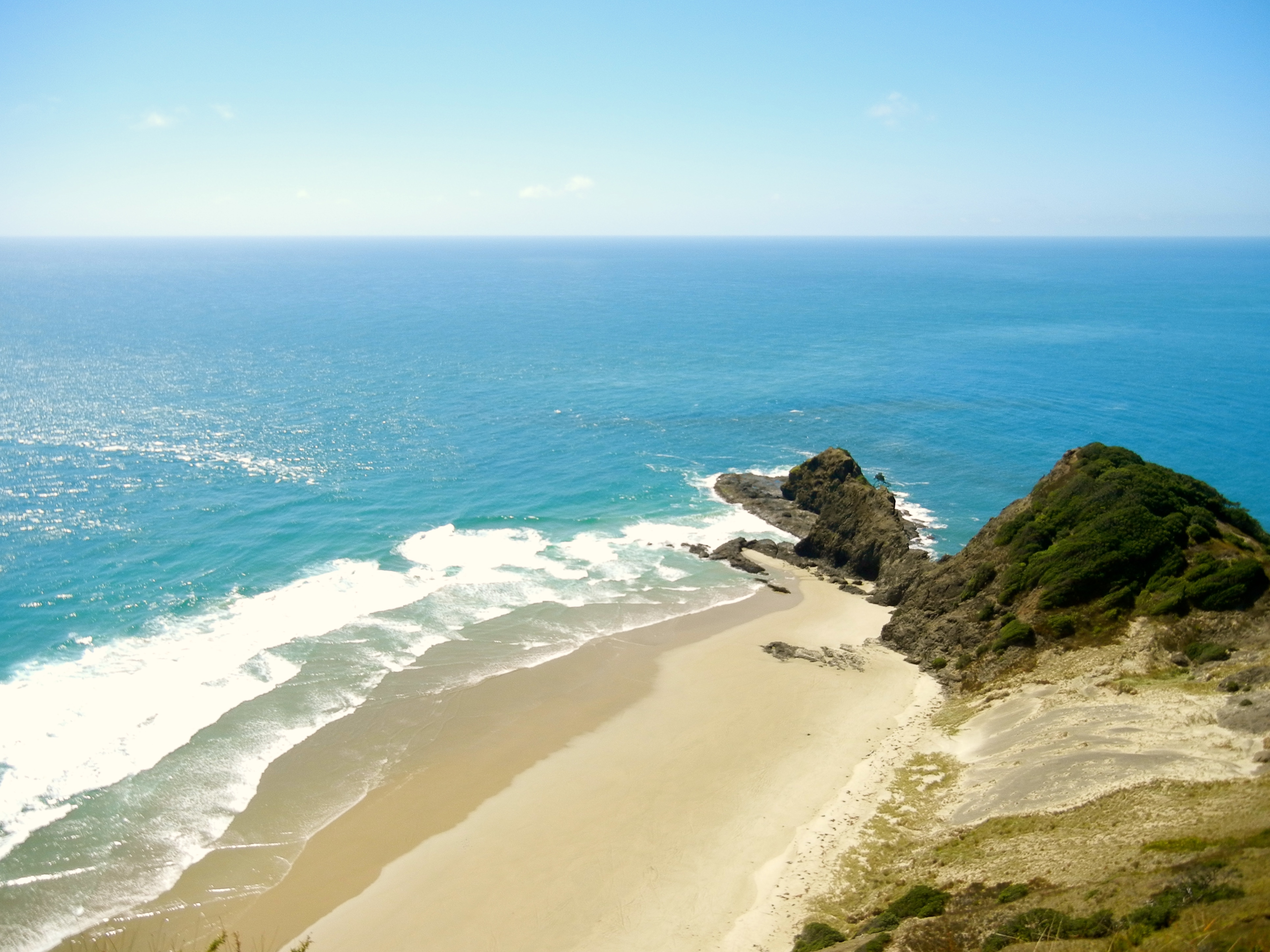 Gestartet sind wir von unserem Campingplatz in Kerikeri. Die Fahrt führt durch hügeliges Weideland mit vereinzeltem Meerblick. Bereits der Weg zum Cape Reinga hat etwas Tolles zu bieten, nämlich den Ninety Mile Beach. Er erstreckt sich über 88 Kilometer von Ahipara bis zum Scott Point. Vom Scott Point sind es nur noch wenige Kilometer bis zum Cape Reinga, dem beinahe nördlichsten Teil von Neuseeland. Mehrere Zufahrtsstrassen führen zum kaum enden wollenden Sandstrand.