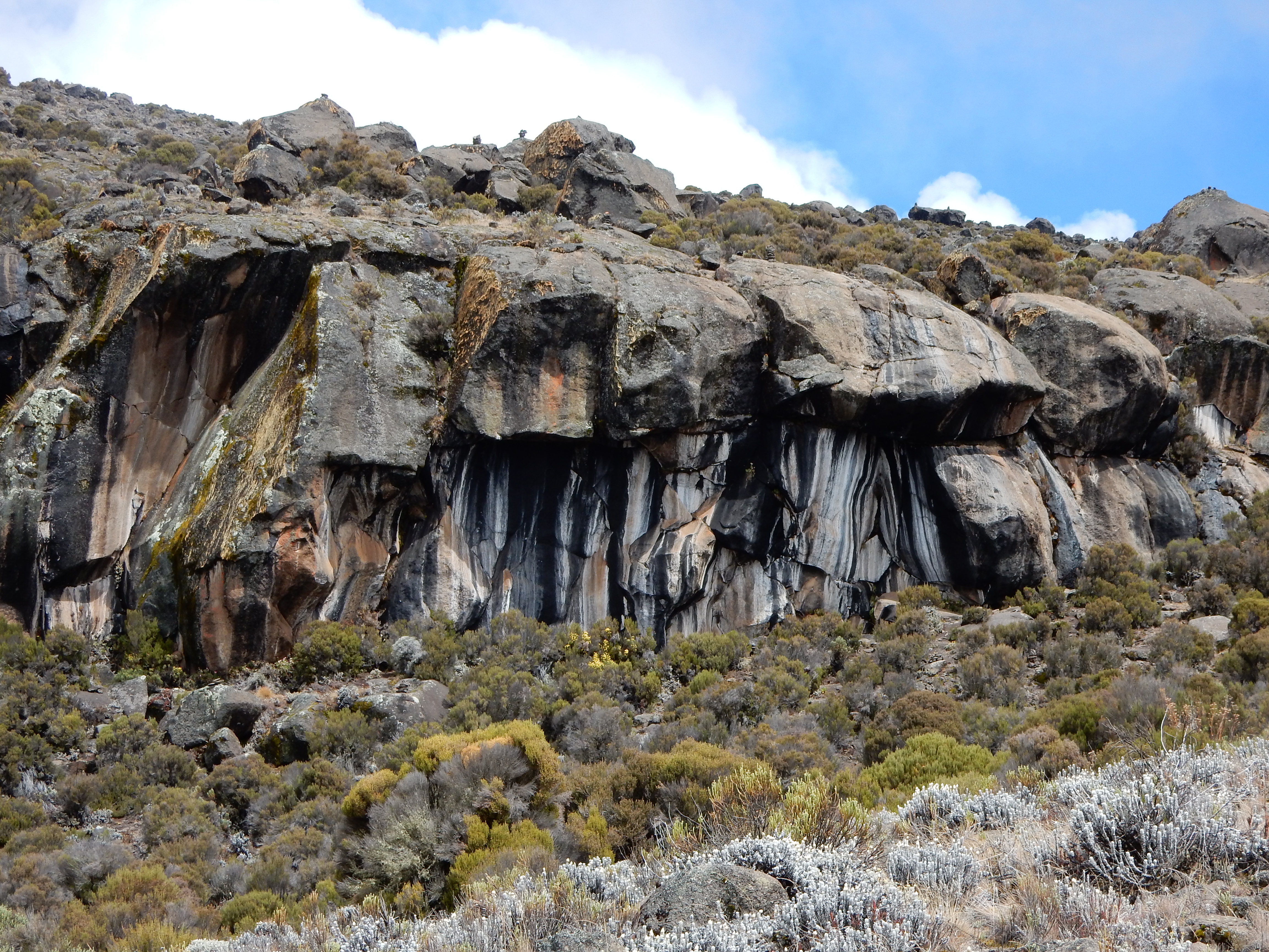 Am zweiten Tag ging es von der Mandara-Hütte aufwärts zur Horombo-Hütte (3718 m). Büsche und Steppengras prägten hauptsächlich das Landschaftsbild.