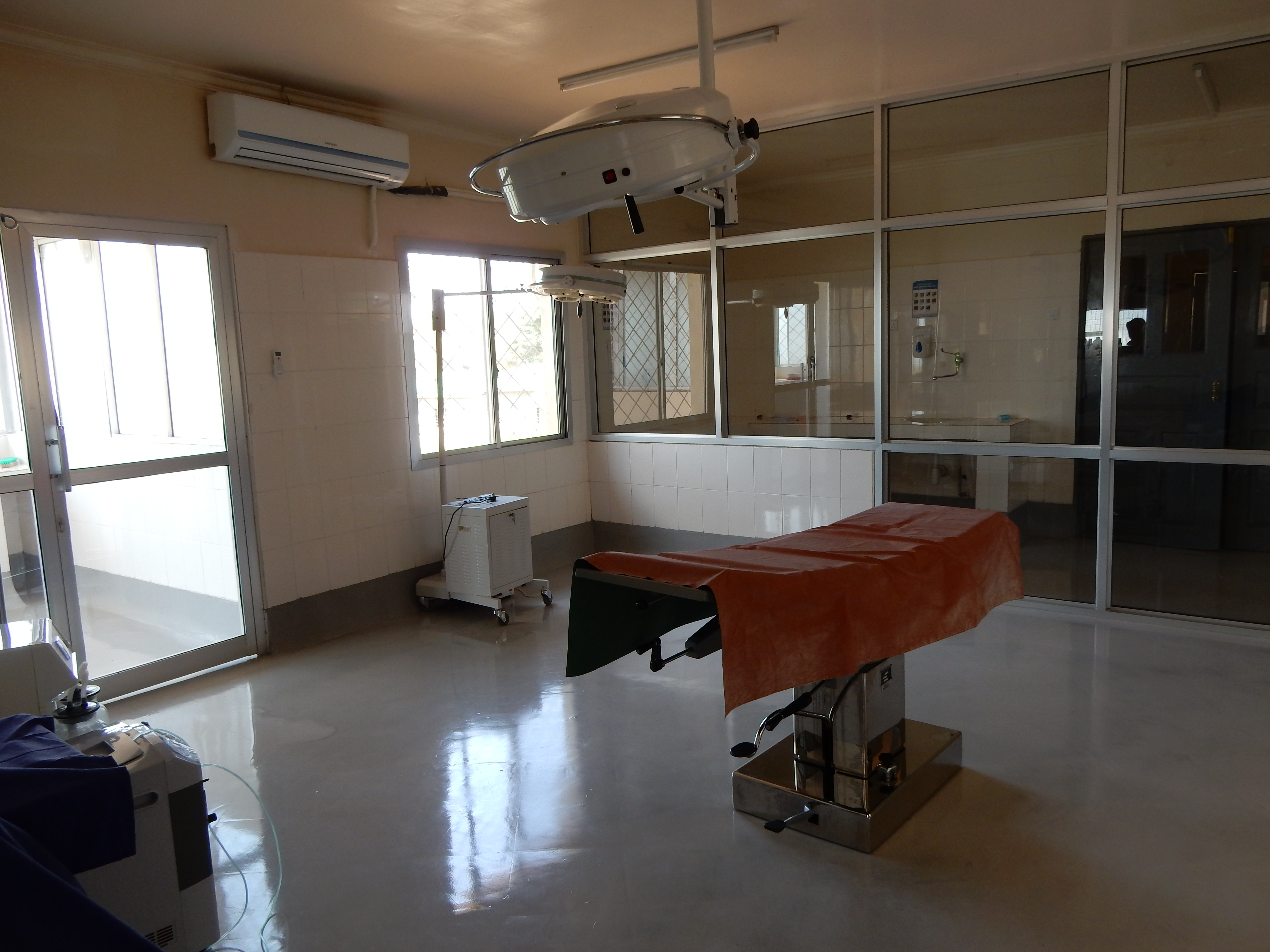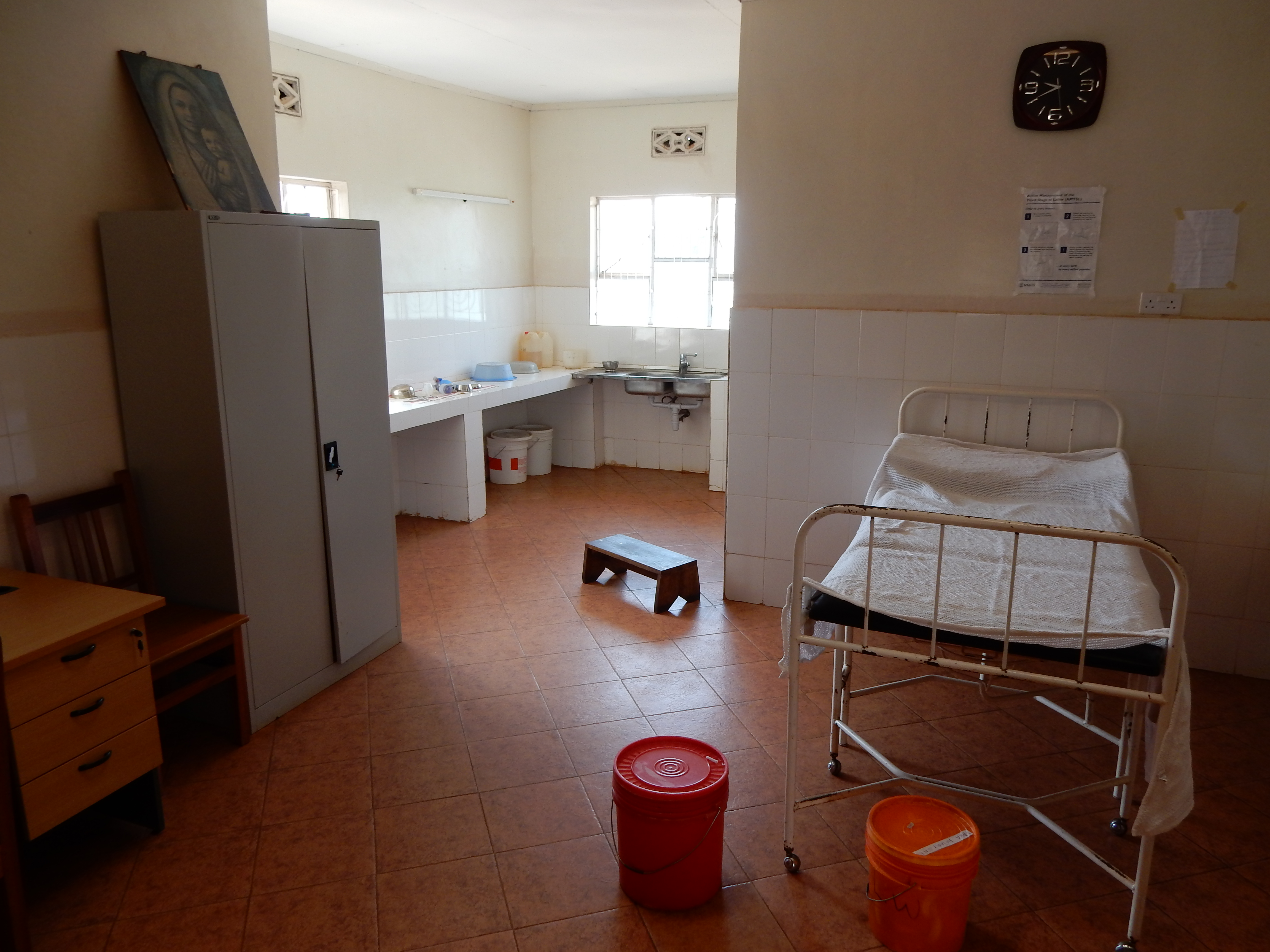 In der Zwischenzeit wird der Stromgenerator angestellt und der Operationssaal vorbereitet. Blandina hat Angst. Doch sie hat keine Kraft, um es weiter auf die natürliche Weise zu versuchen. Nachdem sie eine weitere Wehe überstanden hat, wird sie von ihrer Schwägerin und mir in Richtung Operationssaal begleitet. Vor dem Operationssaal wird sie vom Operations-Team in Empfang genommen.