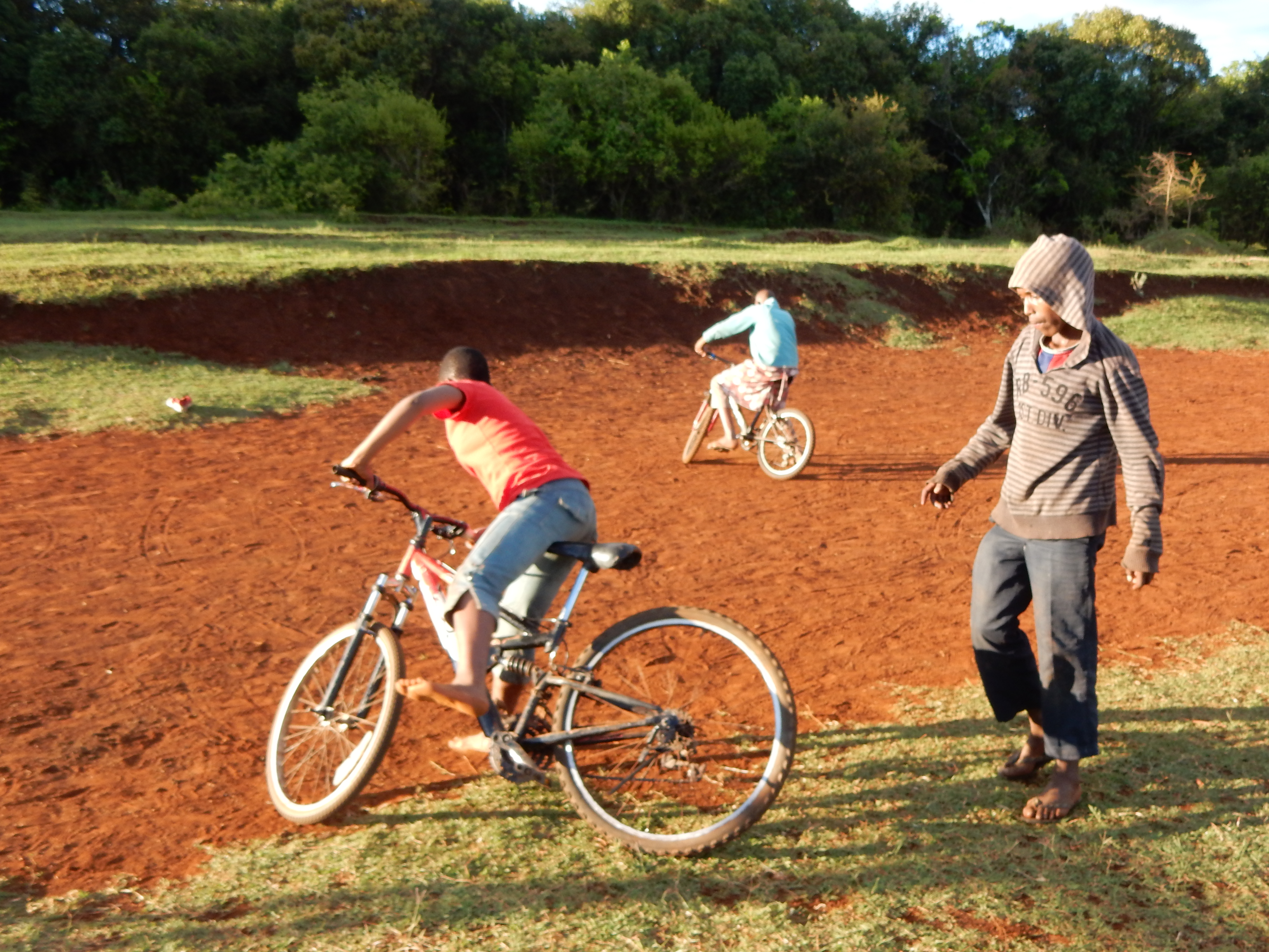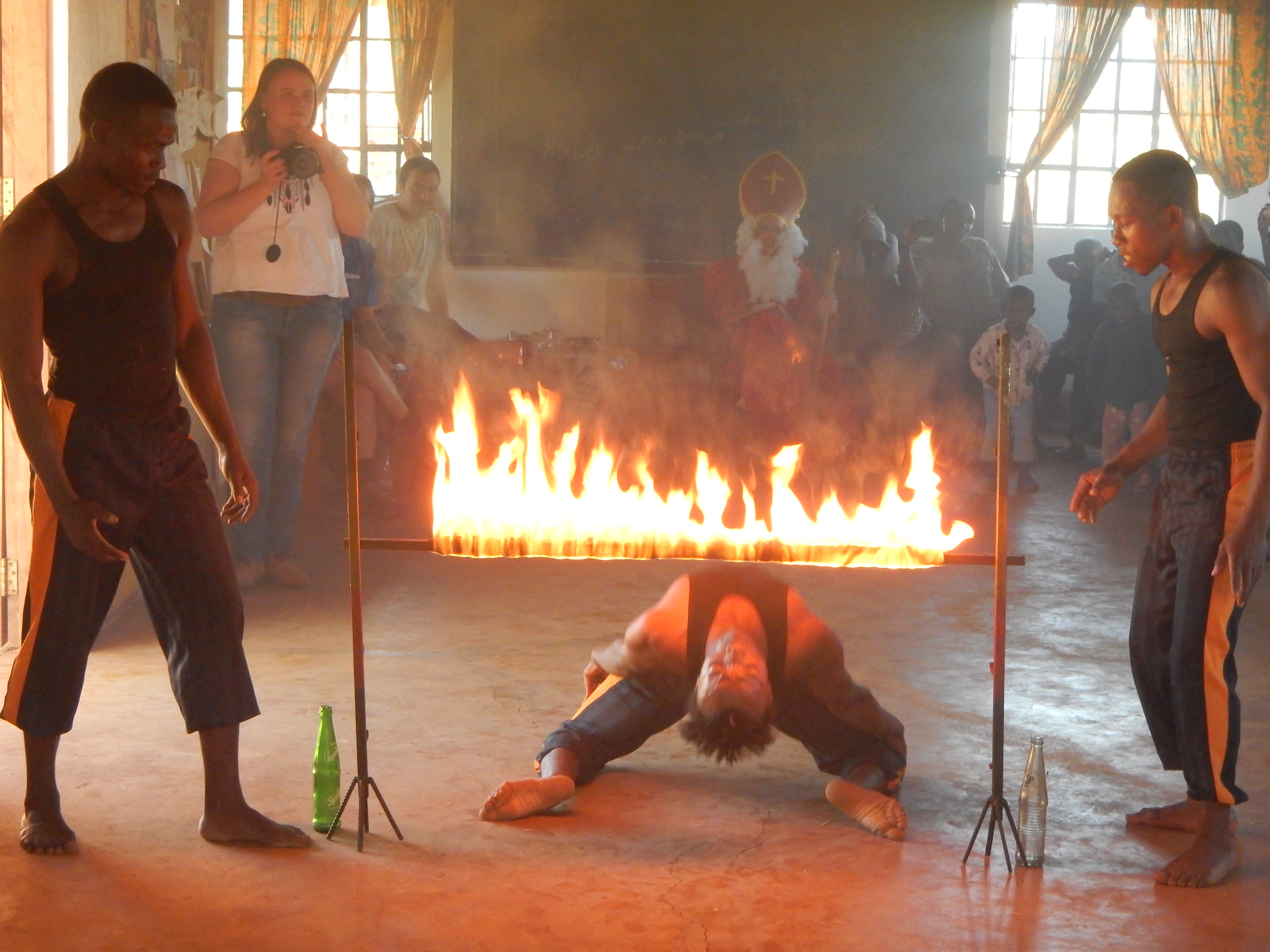 Doch die Hauptattraktion waren nicht etwa die Geschenke oder die Geschichte. Mama Marise organisiert Akrobaten aus dem Dorf, welche uns halsbrecherische Kunststücke vorführten. Ich konnte teilweise kaum hinsehen, da das ganze auf dem blanken Betonboden statt fand. Von Saltos bis zum Limbo-Tanz mit Feuer war alles im Programm. Die Akrobaten machten ihre Sache sehr gut. Die Zuschauer waren begeistert und niemand hatte sich verletzt. Das grösste Highlight für die Kinder war jedoch, als der Samichlaus mit einem Fahrrad angefahren kam und verkündete, dass er noch 2 weitere Fahrräder mit dabei habe. Mit grosser Begeisterung haben die Kinder auf dem Fussballfeld die Fahrräder ausrobiert. Diese Begeisterung hält bis heute an. Die Kinder, welche bereits Fahrad fahren können, haben den anderen Kindern geholfen, es zu lernen.Weihnachten ohne Weihnachtsstimmung