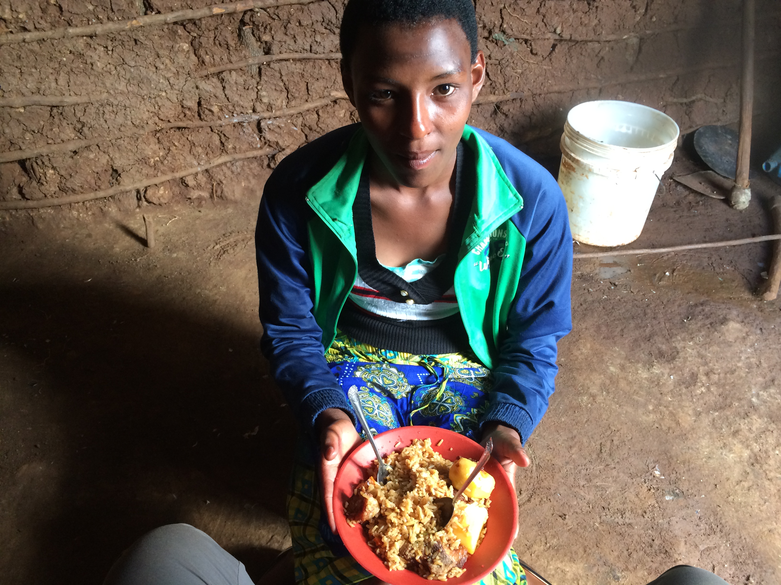 Bei den Schwestern angekommen, erinnerte mich der schön geschückte Weihnachtsbaum etwas an zu Hause. Ich freute mich, die Schwestern wieder einmal zu besuchen. Wir hatten uns viel zu berichten und es tat gut, mich mit ihnen auszutuaschen. Ja, ich bin sehr gerne bei den Schwestern. Sie bieten mir ein Stückchen Heimat in dieser völlig anderen Kultur.Einen Tag später, am 25. Dezember, war wieder tansanische Kultur angesagt. Einige Kinder hatten mich zu ihren Familien eingeladen. So machte ich mich bereits am Morgen mit Selina auf den Weg zu ihrer Tante. Die Tante lebt mit ihrer Familie in einer Lehmhütte in Marera. Zur Begrüssung gab es dann zuerst einmal Chai (Tee) und Chapati (Fladenbrot). Anschliessend spielte ich mit den jüngeren Kindern, während Selina ihrer Tante dabei half, das Weihnachtsessen zu zubereiten. Ich wäre in der „Küche“ wohl keine grosse Hilfe gewesen. Aber es war spannend zu sehen, wie Selina und ihre Tante Pilau (Reis mit Gemüse und Fleischstücken) auf dem Feuer kochten.